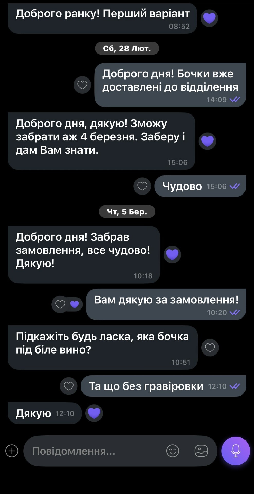 Наші бочки виготовлені згідно традиційної бондарної технологією з якісного дуба, без застосування клеїв, лаків та інших хімікатів.