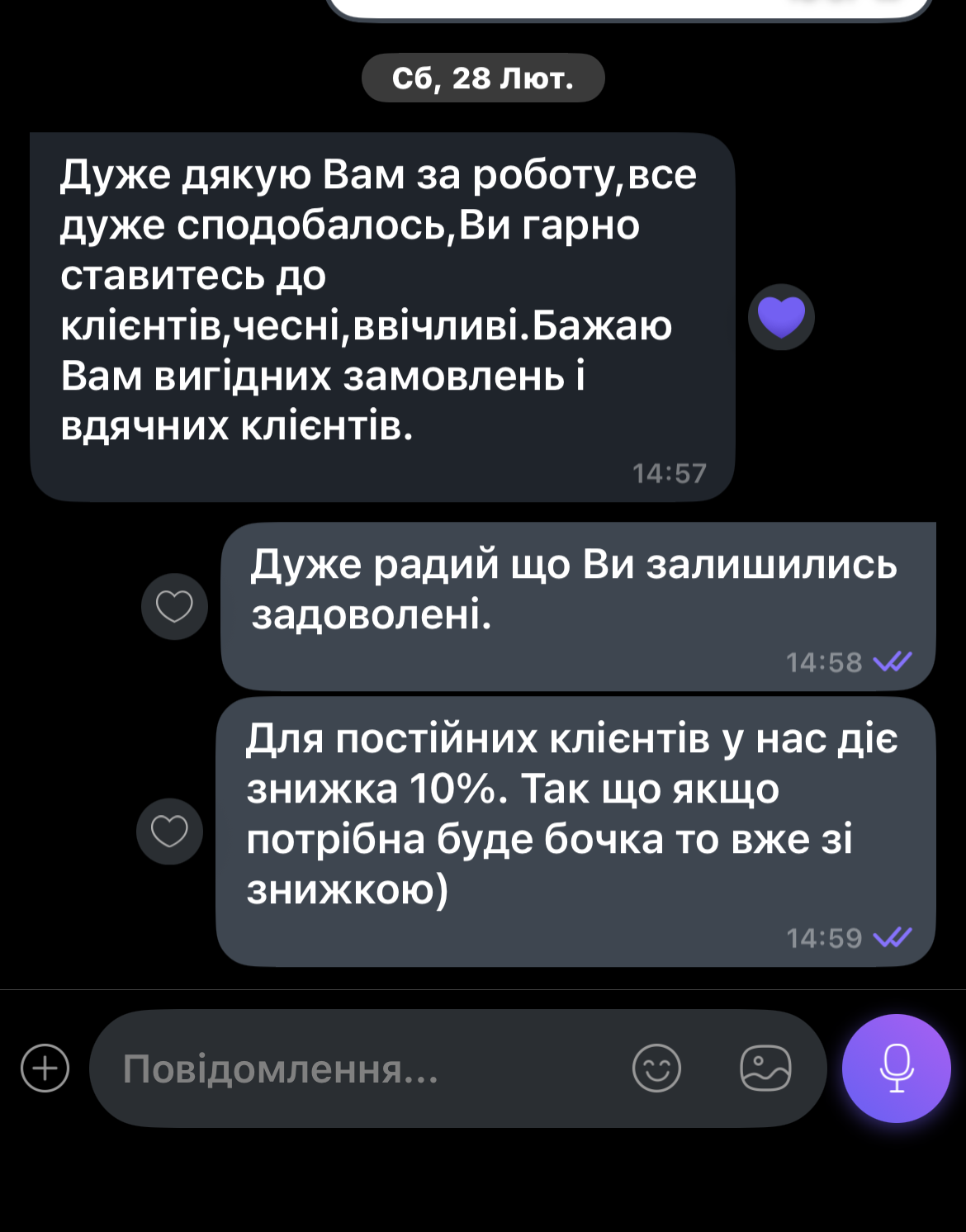 Наші дубові бочки виготовляються з найкращого дубового дерева, що гарантує відмінну якість та довгий термін служби.